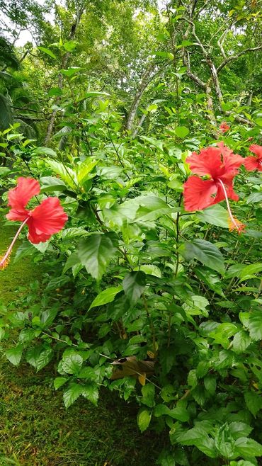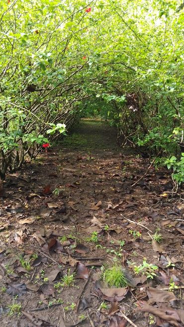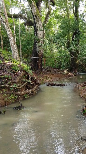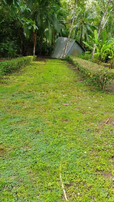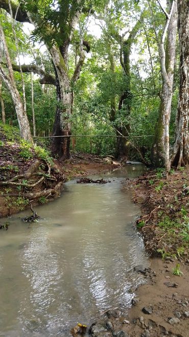There are extensive and well-manicured grounds around both house and cabin. There's also an upper section with a field and fruit trees. Abuela Creek runs right through!